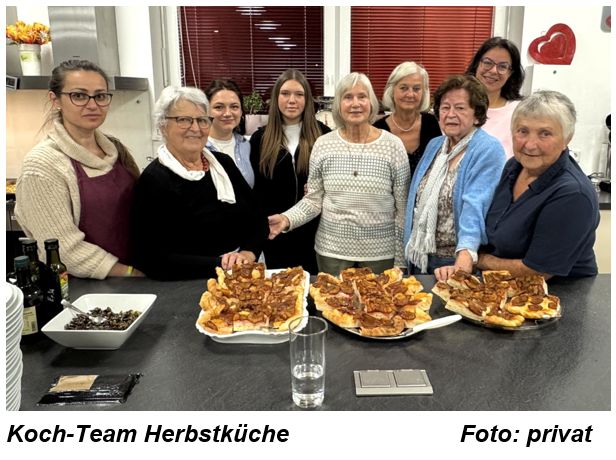 Am Samstagnachmittag trifft sich das Koch-Team um 16 Uhr mit den angemeldeten Hobbyköchinnen und -köchen; bis zu zehn Personen können gemeinsam kochen. Nach einer Kennenlern-Runde werden die oft besonderen Zutaten und die geplanten Rezepte vorgestellt. Dann wird geschält, geschnipselt, gewogen, gerührt, gekocht, gebacken … gelacht, gestikuliert, gedolmetscht und erzählt, vom Geschmack der Heimat, von den Düften der Kindheit. An Herd und Backofen wird es warm, intensive Gerüche ziehen durch den Raum. Die Veranstalterin erinnert: „In einer halben Stunde kommen die Gäste …“ Am schwarzen Brett stehen die Gerichte angeschrieben, die Tische werden liebevoll gedeckt. Um 19 Uhr kommen weitere Gäste zum Essen dazu. Das Koch-Team stellt den Gästen an der großen Theke die Speisen vor. In bunt gemischten kleinen Tischgruppen werden die Gerichte genossen. Essen und die Zubereitung sind ein guter Einstieg ins Gespräch. „In Gemeinschaft schmeckt es einfach besser“, so eine Teilnehmerin. Im Januar steht die chinesische Küche im Fokus. Die Termine erscheinen im Monatsprogramm der Kaiserstiftung; dort erfolgt auch die Anmeldung zum Kochen bzw. zum Essen. Möchten Sie ein Essen mit Gerichten Ihrer Heimat gemeinsam mit anderen Teilnehmenden aus verschiedenen Ländern – von Jugendlichen bis Senioren – kochen? Dann melden Sie sich bei uns, Dany Graser und Heidi Maurer, Mail: info@helferkreis-asyl.com oder direkt in der Kaiserstiftung. Helferkreis Asyl Ottobrunn/Hohenbrunn (Quelle: "Gemeindeblatt Hohenbrunn", Dezember 2025, Seite 52)